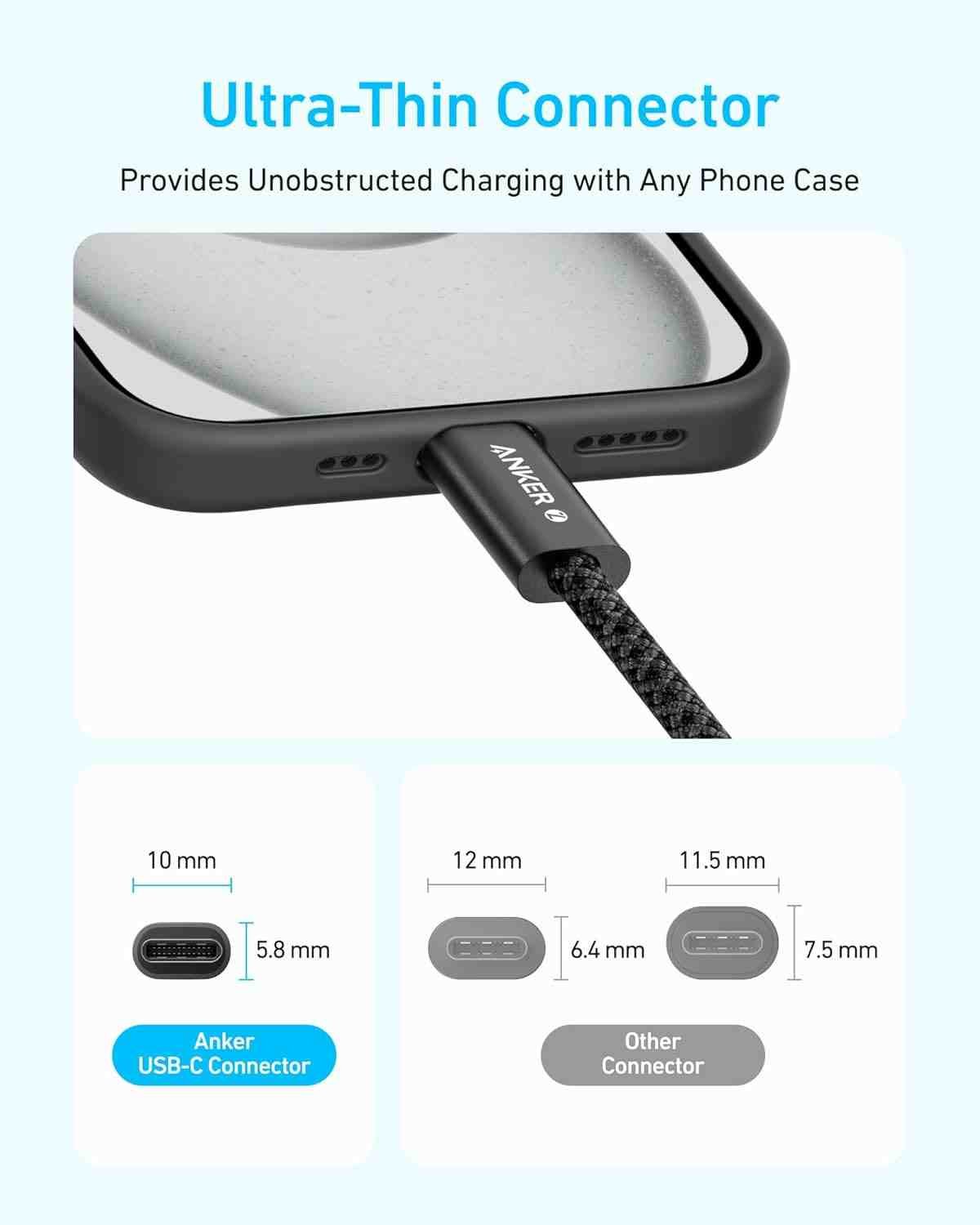 Tested to withstand over 10,000 bends, this cable is built for heavy daily use—whether at home, in the office, or on the go. Along with 480 Mbps data transfer, it allows smooth file syncing while charging, making it an all-in-one solution for modern USB-C devices. The Anker Zolo cable offers a premium, future-ready charging experience backed by Anker’s trusted quality and safety standard